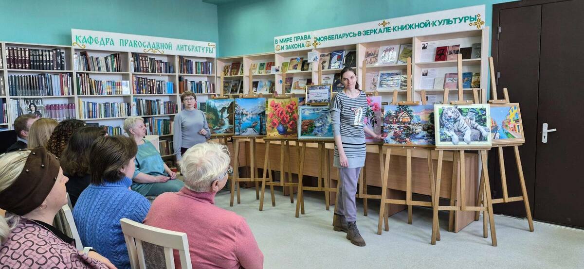 В преддверии Дня женщин 5 марта в центральной районной библиотеке имени М.Богдановича прошла презентация арт-выставки "Магия алмазной крошки".Работы представленные на выставке выполнены посетителями отделения социальной реабилитации, абилитации инвалидов, обеспечения дневного пребывания для граждан пожилого возраста. Картины, созданные без иголки, а при помощи выкладывания изображения на широком холсте специальными акриловыми стразами, имеют потрясающий внешний вид. Сюжеты, использованные при изготовлении картин, разнообразны по темам. Готовые картины получаются объемными, переливаются на свету.